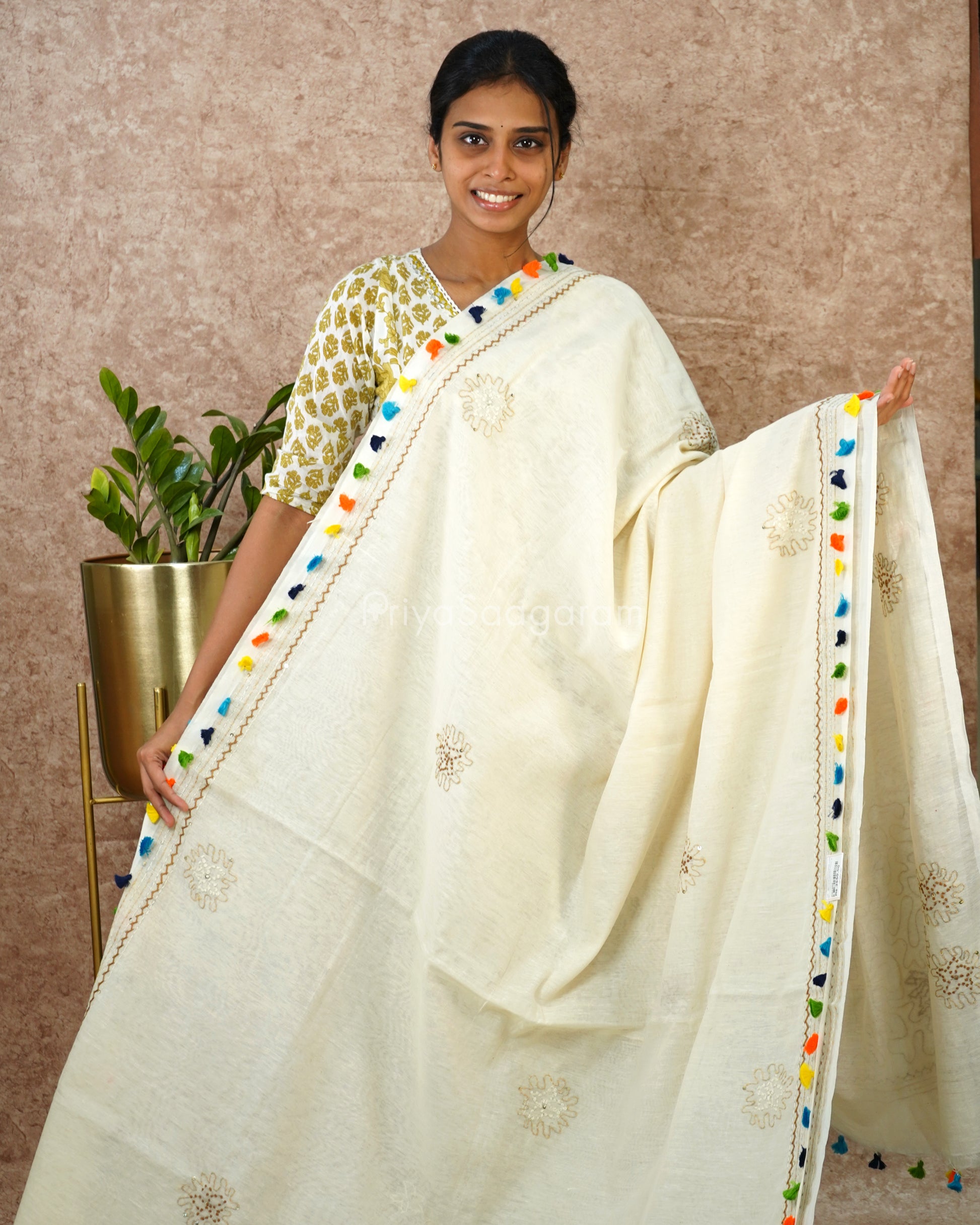Cream Embroidery Pure Cotton - PD1422